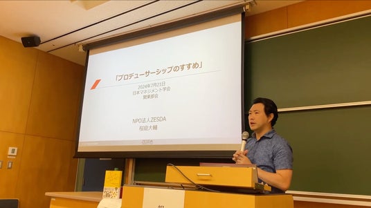 7月21日に開催された日本マネジメント学会関東部会に、代表の桜庭が登壇しました。今回は「プロデューサーシップのすすめ」をテーマに、イノベーション創出を可能にする座組を構築する「プロデューサー」の役割等について講演し、多くの参加者から関心をお寄せいただきました。