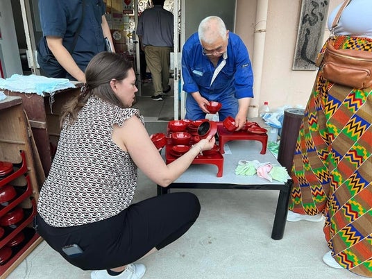 まずは、佐野プロジェクトを担当するシニアプロデューサーの佐山が、ロサンゼルス在住の栃木県人会員で県のアンバサダーも務める田崎敏弘さんと、佐野市の伝統工芸である天明鋳物(てんみょういもの)を製造する鋳物師との打合せを行いました。2024年10月~11月のGlocal Collaboration開催に向けて、佐野市の工房の視察等を実施していく予定です。