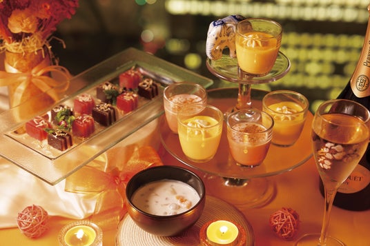 イベント名「THAI "ORANGE NIGHT"」は、マンゴツリーのブランドカラーであるオレンジと、太陽が沈む時間帯の美しいオレンジ色の空に由来します。丸ビル35階から、東京の空と街がオレンジ色に染まる幻想的な夕景、そして次第に街の灯りが煌めき出す夜景へのグラデーションを一望できます。本格タイ料理と「ペリエ ジュエ」のシャンパーニュを片手に、記憶に残る一夜を演出いたします。