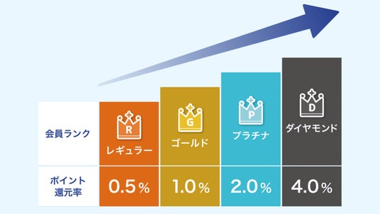 年間の購入金額に応じて会員ランクが上がり、付与率が段階的にアップ。最大で購入金額の4%を付