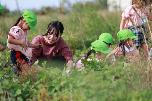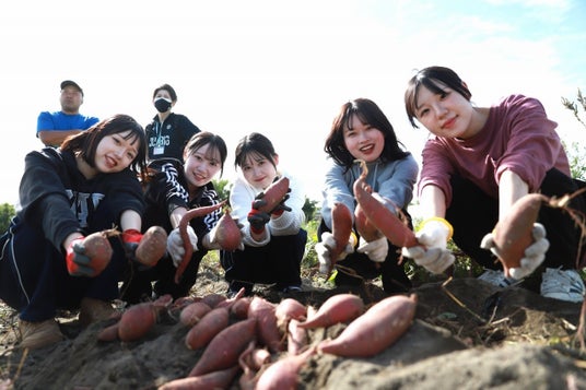 NSGグループの国際こども・福祉カレッジの学生は10月9日、NSGグループ企業である株式会社ベジ・アビオの圃場で、藤見幼稚園のこどもたちと一緒に芋掘り体験をおこないました。この特別授業では、自然とのふれあいを深めることを目的とし、学生とこどもたちが一緒に楽しく学びました。