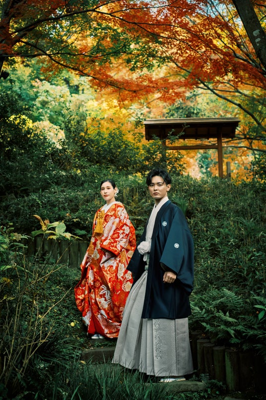 近年、男性の美容意識やファッション感度が高まっており、挙式においても「自分らしさを表現できる装い」を求める傾向が強まっています。実際に、和婚スタイルでは男性メイクアップの受注率が70%を超えるなど、多くのご新郎さまがメイクを取り入れる時代となりました。ヘアスタイルやメイクを通して「自分らしさ」を表現したいという声が増え、それに合わせて衣装へのこだわりも高まっています。今回、そうしたトレンドに応える形で、より自由で洗練された男性の和装ラインナップを拡張し、日本の伝統美を再発見できる機会を提供いたします。