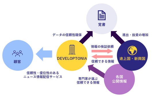 前述のとおり、DEVELOPTONIAでは、途上国・新興国の市場に焦点を当てたビジネス情報配信サービス「KiAI」を提供しています。MOUを締結することにより、情報検証の体制を構築し、情報の信頼性、有意性を高めてまいります。この第一歩として、ウズベキスタンおよびキルギス共和国と覚書を結びました。今後、全ての途上国・新興国と覚書を締結し、他社には実現できない信頼性の高い情報提供を行ってまいります。