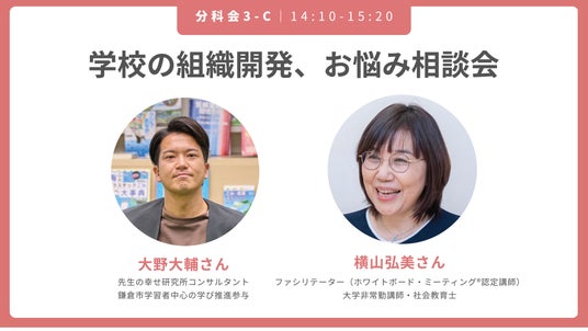 学校には様々な組織的な課題があります。「どうにかしたいけど、何からどうすれば...」と感じること、ありますよね。横山さんのファシリテーションのもと、全国の数多くの学校の改革に伴走している大野さんにリアルな悩みを相談してみませんか?