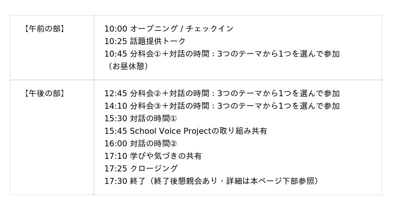 今後、School Voice Project のイベントでは、《誰もが参加できる場づくり》を目指していきます。参加のハードルをなるべく解消すべく、今回は以下の取り組みを行います。