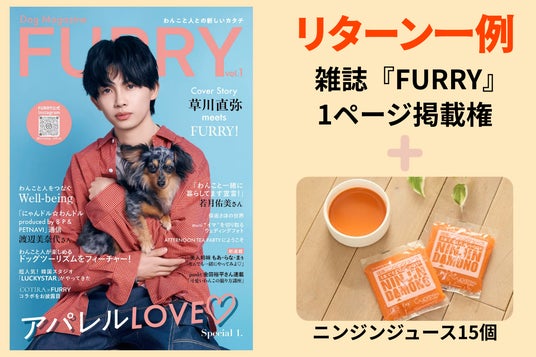 雑誌「FURRY」1ページ広告掲載権(ご希望のメッセージや写真で)、LPや公式サイトへの支援者名掲載など。