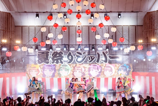 FRUITS ZIPPERのメンバーはお祭り感たっぷりのOvertureと共に法被をリメイクした衣装で登場。夏曲「ぴゅあいんざわーるど」「ふれふるサマー!」や1stアルバムに収録されている楽曲「わたしの一番かわいいところ」「君の明るい未来を追いかけて」「Going!」「NEW KAWAII」など全13曲を披露した。