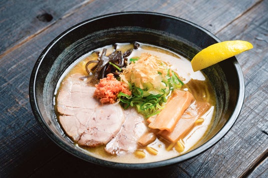 素材の旨味を凝縮したスープに風味豊かな鮭だしを加えることで、パンチのある味わいに。トッピングには鮭の風味をさらに高める鮭フレークのほか柔らかなチャーシューなどを添えてます。お好みでレモンを搾ると、さっぱりとした風味に!