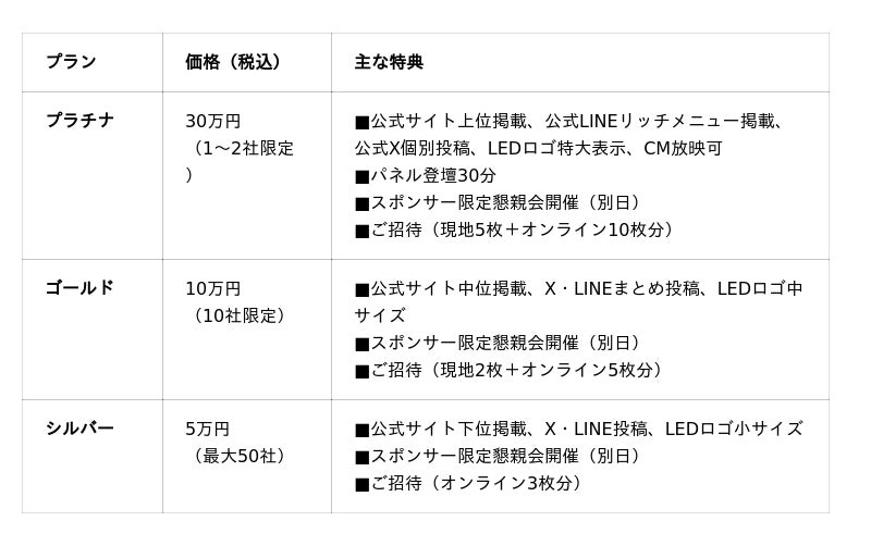 本イベントでは、地域・企業・団体の皆様にご協賛いただける3つのプランをご用意しています。
