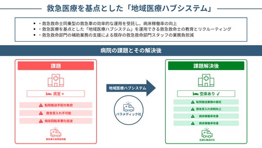 TOKUジャパン株式会社(代表取締役:中田雅朗)が、株式会社パラメディック(代表取締役:釜祐樹)の医療特化型搬送サービスを基点とする『地域医療ハブシステム』を活用した病院経営改善を、本格的にサポート。