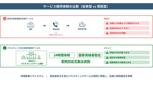 そして、パラメディック社のサービスを通じて、地域医療ネットワークの構築と効率化を進め、その結果として救急医療分野における医療従事者の働き方改革と患者サービス向上を同時実現させることを目指しています。