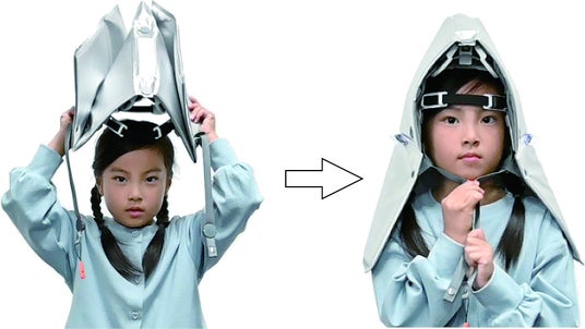 子供の頃、せまる台風に備えて母が家族に防災頭巾を作った際、私は一つだけあったヘルメットを選んだ。雨風が強くなる中眠れず、ヘルメットが頼りなく思え、なぜ自分も頭巾を作ってもらわなかったのかと後悔をした思い出がある。コンパクトで独特の安心感のある柔らかい防災具。硬いヘルメットでのノウハウも活きている。