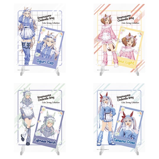 キャラポップストアでは、アニメ『ウマ娘 シンデレラグレイ』に登場するウマ娘たちが「Cute Jersey Collection」をテーマにしたオリジナル衣装に身を包みます。
