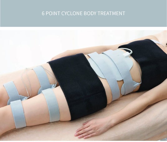 6極電極パッドによる回転式ポイント通電刺激で、腹部・背中・ヒップ・太ももなどの筋肉を広く・深く捉えて動かします。