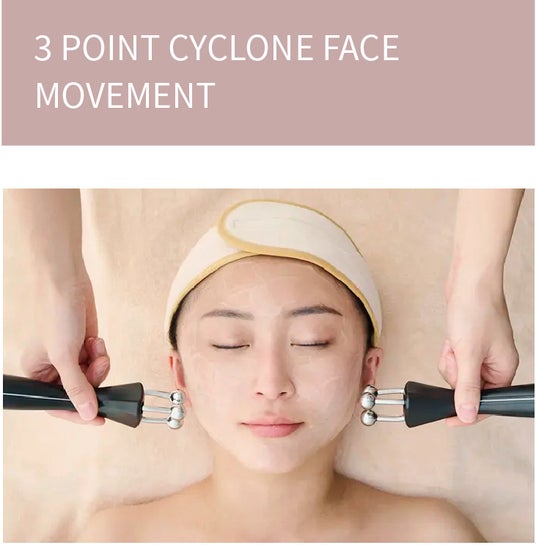 3極スティック導子による立体感のある中周波サイクロンが、表層・中層・深層へと段階的に届いて表情筋を動かします。