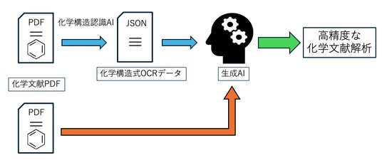 化学構造認識AIモデルと生成AIのそれぞれの強みを活かした連携により高精度な化学文書解析を実現。