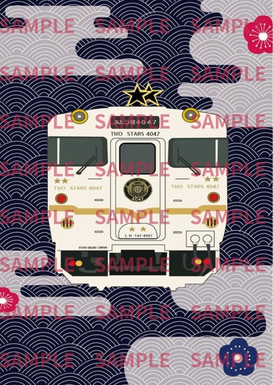 『ふたつ星4047』の上質で静かな旅の魅力を、日本の伝統美と融合したグラフィックで表現した作品です。背景には、青海波の模様を用い、穏やかで波のような列車の時間を象徴にしています。また、梅の花で落ち着いた和の雰囲気をだしました。
