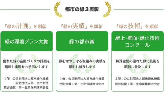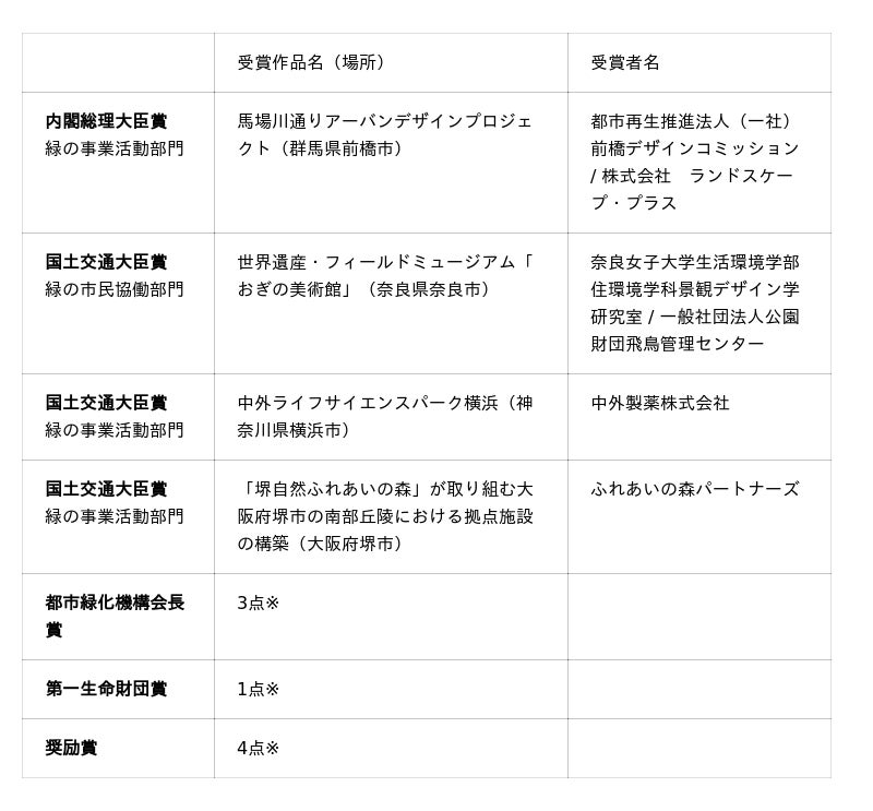 ※都市緑化機構会長賞、第一生命財団賞、奨励賞の受賞作品、各賞の詳細はプレスリリース資料をご覧ください。