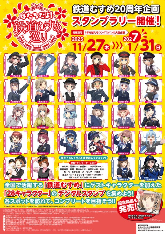 タカラトミーグループの株式会社トミーテック(代表取締役社長:樅山 尚仁/所在地:栃木県下都賀郡)は、全国の鉄道事業者の制服を着たキャラクター「鉄道むすめ」が、2025年11月30日(日)に20周年を迎えることを記念して、これまでの「鉄道むすめ」の歩みや最新情報をお伝えするYouTube配信、スタンプラリーなどの記念プロジェクトを2025年11月から順次実施いたします。