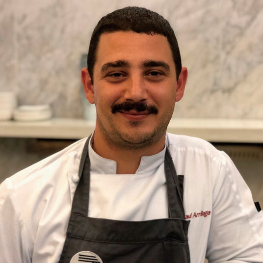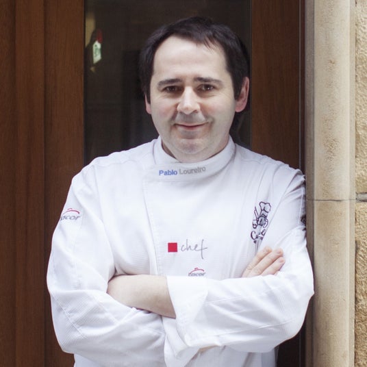 生粋のサン・セバスティアンっ子。旧市街に1956年創業の歴史あるバル兼レストランの3代目シェフを2012年より務める。1階は豊富なピンチョスのバル、2階は炭火焼きの技を生かした料理を提供するレストラン。
