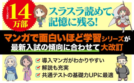 マンガで納得し、講義で理解が定着。得点力アップまで導くのが、“マンガで面白いほど学習シリーズ”です。