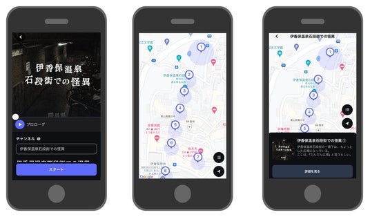 こうした背景から、今回日本最大級のWeb小説サイト「カクヨム」を運営するKADOKAWAと連携し、小説の定番ジャンルであり、大人も子供も気軽に楽しめる人気コンテンツである「ホラー」をテーマに日本各地を題材にした作品を、地域に根ざした多くの作家(クリエイター)が制作。普段何気なく歩いている商店街や、公園、故郷のお城や温泉街等の観光スポットなど、音声ARで地域の日常を肝試しの舞台へ拡張することで、音とフィクションによる新しい没入体験を生み出しつつ、地域の活性化や、地域資源の再発見につなげてきます。
