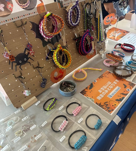 出店では、パラコードアクセサリーやビーズアクセサリーを販売しました。