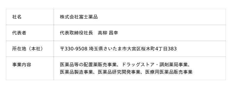 富士薬品は、1930年富山県富山市における配置薬販売業の創業からスタートし、現在では配置薬販売事業に加えて、ドラッグストア・調剤薬局事業、医薬品製造事業、医薬品研究開発事業、医療用医薬品販売事業を展開する複合型医薬品企業です。スローガン「とどけ、元気。つづけ、元気。」のもと、富士薬品グループ全体で日本全国に1,273店(2025年3月末時点)を展開する「セイムス」ブランドを中心としたドラッグストアと、全国に広がるラストワンマイルを埋める配置薬販売ネットワークを生かし、誰もが豊かな人生を送れる社会の実現に向けて、人々の暮らしのあらゆる場面で寄り添い、元気な生活を支え続けてまいります。