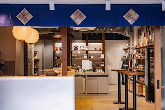 「世界と未来へつなぐ--日本の美とアイデアの発信拠点」をコンセプトに、全国400点以上の逸品を揃えたセレクトショップと、佐賀の茶農家監修のカフェ・バーを併設。店舗は浅草駅から徒歩 3 分、浅草寺から徒歩 2 分という好立地に位置し、世界中から訪れる観光客を迎えます。