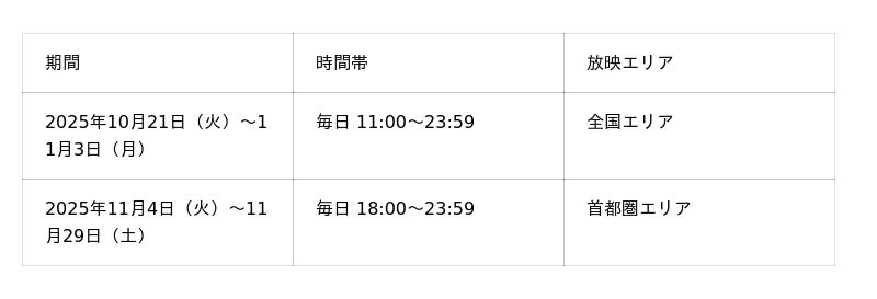 以降、2026年2月初旬まで全国エリアで継続放映予定