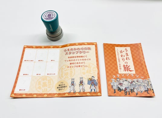 「うまれかわりの旅」のテーマに合わせ、来館者が楽しめるスタンプラリーも開催しています(先着2,500名)。展示室・施設内に7か所設置したスタンプを集めると、記念のステッカーがもれなくもらえます。特別展入口で「御朱印帳」型のスタンプ帳を入手して参加できます。