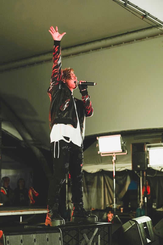 ライブのはじめに全エリア、出演者、スタッフ、出店者、ボランティア、警備、ご協賛者、ご来場者全ての人に感謝をインカムをつけたままマイクと共に述べた。