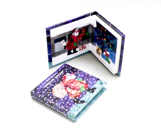 絵本『ゆめのゆき』を忠実に再現し、ミニチュア化した絵本型マグネットです。表紙部分が開き、中表紙には絵本の最後の印象的なシーンが。メモなどを挟んでクリップのようにも使えます。