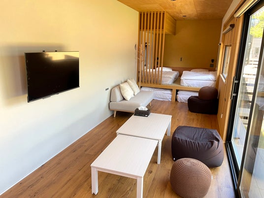 トレーラーハウスは、定員5名で、ファミリー、カップルなどの個人利用のほか、ゼミ合宿といった学生の利用、ワーケーションやオフサイトミーティングなどのビジネス利用等、幅広い利用機会を見込んでいます。
