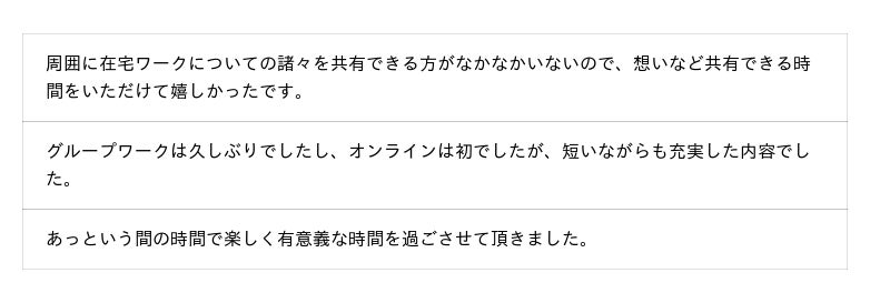 今回のワークを通じて得た気づきが、今後の仕事やチームづくりに活かされ、メンバー一人ひとりの幸せな働き方へとつながっていくことを期待しています。