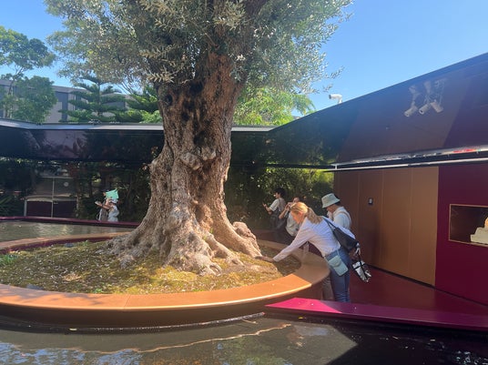 ミラクルガーデンでは、この古代オリーブ樹を通して自然のマイクロバイオームが人間の脳機能に与える影響を体験できる特別な展示が行われました。
