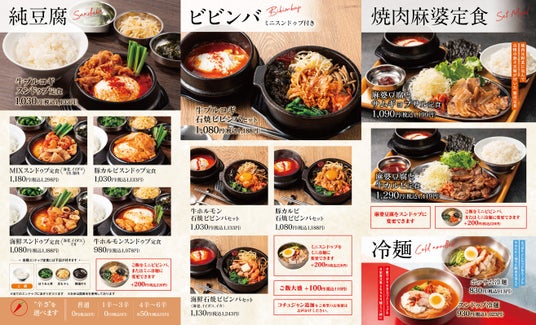アークランドサービスホールディングス株式会社の子会社、「肉めし岡もと」などを運営する株式会社トビラダイニング(本社:東京都千代田区/代表:布施 裕康)は、スンドゥブ定食専門店「スンドゥブ 中山豆腐店」にて、新グランドメニューを2025年10月29日(水)より販売開始いたします。