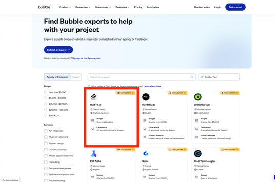 参考公式ページ:https://bubble.io/experts-directory/agency-freelancer?page=2