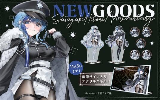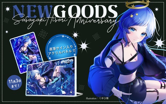 クリエイターグッズの企画・製造・販売を支援する株式会社メディアリンクは、VTuber「紗彩木ひそり」の活動6.5周年を記念したアニバーサリーグッズを、公式オンラインストア「HISOSTORE(ヒソストア)」にて販売開始いたします。