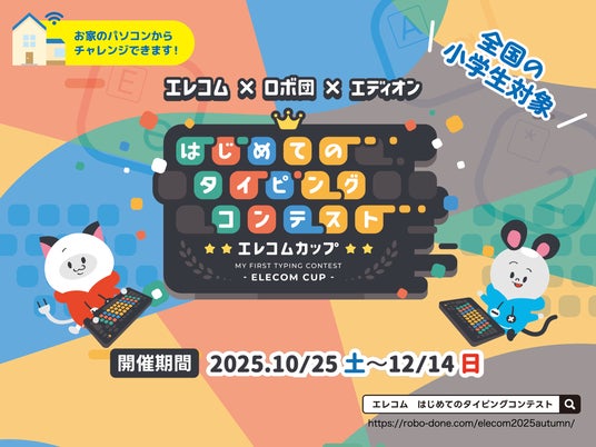 エディオングループの夢見る株式会社(大阪府堺市、代表取締役:重見彰則)が全国に約120教室展開するロボットプログラミング教室「ロボ団」は、今回で3回目となるエレコム株式会社(大阪府大阪市、代表取締役会長:葉田順治)とのコラボレーションイベント「はじめてのタイピングコンテスト エレコムカップ2025 Autumn」を開催します。
