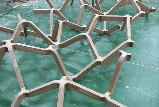 今回は、pivoto のデザイン力とこれまで培ってきたモノづくりの知恵・知識をYAMASHITA の生産力とをかけ合わせて”YAMASHITA + pivoto”というチーム名で集成材を用いた新たなオフィス家具を開発中です。
