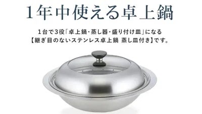 ・プロジェクト名:鍋、蒸し、盛り付け!1台3役で1年中使える卓上鍋・発起人:下村企販株式会社