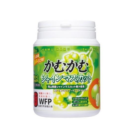 かむかむシリーズは30gの袋タイプと120gのボトルタイプも品揃えしております。年間で発売している商品は「レモン」と「シャインマスカット」、9月~2月の期間で「ホワイトソーダ」を発売しております。