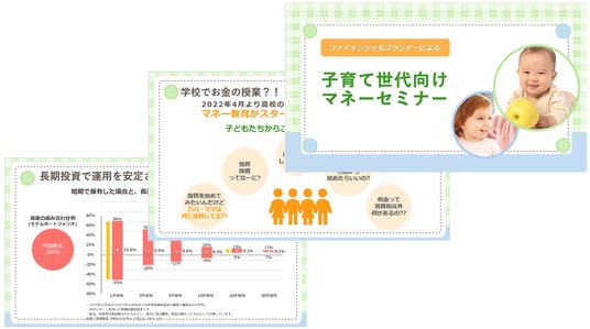 この度、FP素材屋さん(https://fpsozaiyasan.myclerk.net/) を展開する 株式会社マイクラーク(宮城県仙台市 代表取締役 北川英之 https://myclerk.net/ 、以下 マイクラーク社 )は、ファイナンシャル プランナー(以下 FP)向けのマネーセミナースライドを販売開始することを決定いたしました。
