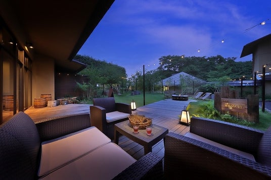 綺麗に手入れされた森の音ガーデンで、秋風を浴びながらリラックスタイム。ファイヤーピットにて燻製体験をしたり、ヨガをしたり。様々な楽しみ方でお過ごしいただけます。テラス席では、焚火に癒されながら、デザートやドリンクをお召し上がりいただけます。