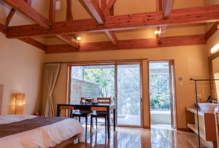 茨城県稲敷市にて東南アジアをイメージした作りで全室露天風呂と室内ジャグジーを完備したプライベートコテージを運営しています。一部屋ごとに独立してることに加え、夕食や朝食・各種オプションもすべてお部屋にて対応します。VIP特別室には岩盤浴も完備しています。