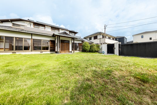 約100坪の広々とした芝生の庭では、バーベキューやドッグランとしての利用も可能で、のびのびとした時間をお楽しみいただけます。※バーベキューコンロなどは備え付けています。
