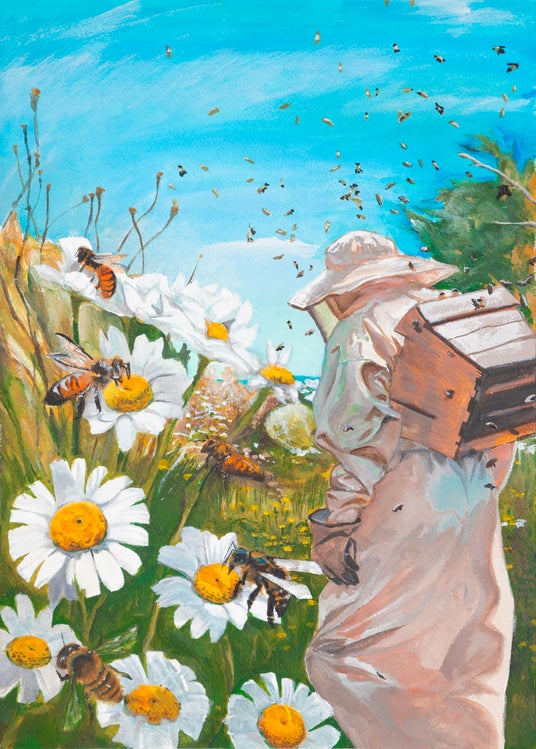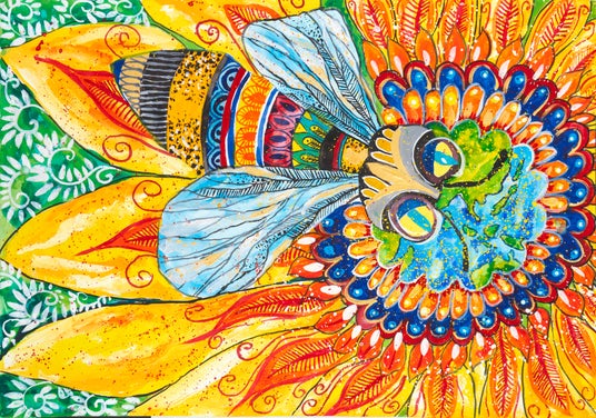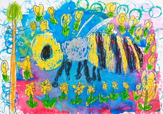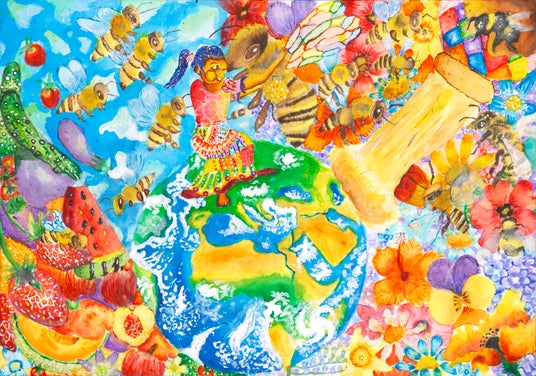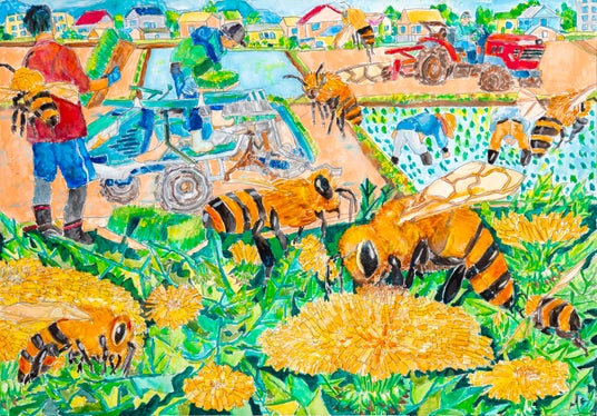 農作物や自然界の植物の多くは、ミツバチが行う花粉媒介(ポリネーション)によって果実を実らせ、次世代へと命をつないでいます。ミツバチを描くことは、ミツバチと植物との関わりを学び、自然環境の大切さを改めて考えるきっかけとなります。