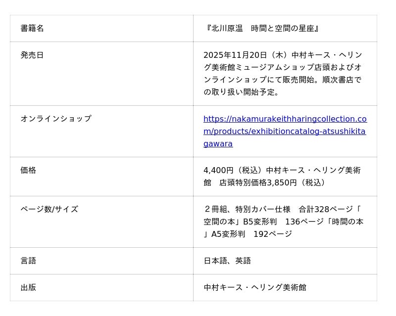 この展覧会に併せて、北川原氏の日本語による初の書籍である、展覧会カタログ『北川原温 時間と空間の星座』を11月20日(木)に発売します。本書は展覧会を構成する「空間の本」と「時間の本」からなる2冊組みで、建築家の思想と想像のプロセスを多角的に紹介します。