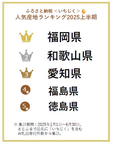 2025年上半期の「いちじく」の寄付件数を基にした人気産地ランキングでは、福岡県が1位となりました。同県では、5月のハウス栽培から11月の露地栽培まで長期出荷が可能で、オリジナルブランド「とよみつひめ」は、上品な甘さととろけるような果肉が特徴です。市場にあまり出回らない希少品種ですが、いちじくを初めて食べる方にも食べやすいと好評です。